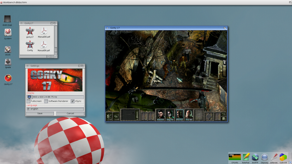 - Requires either CybergraphX or Picasso 96 installed, no support for AGA, requires chunky 640x480 16 bit mode