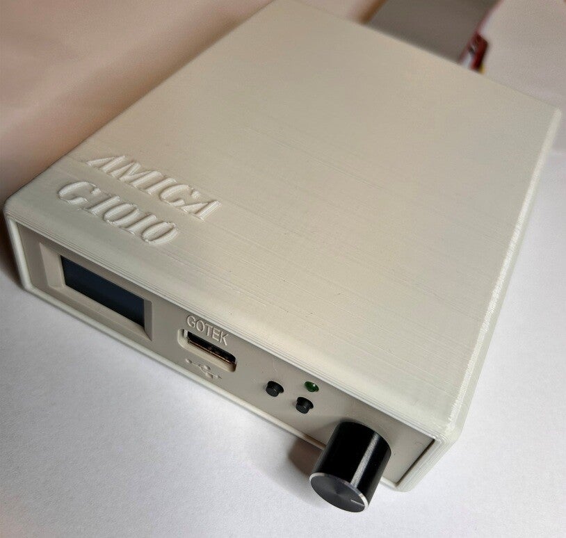 The Gotek is placed here in a neat housing with rubber feet.