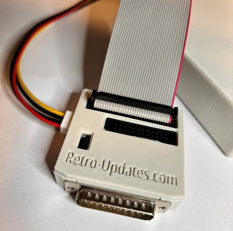 To connect this external Gotek unit to your Amiga's external DB23 floppy drive connection, you need the optional Gotek external drive interface including power and data cable.